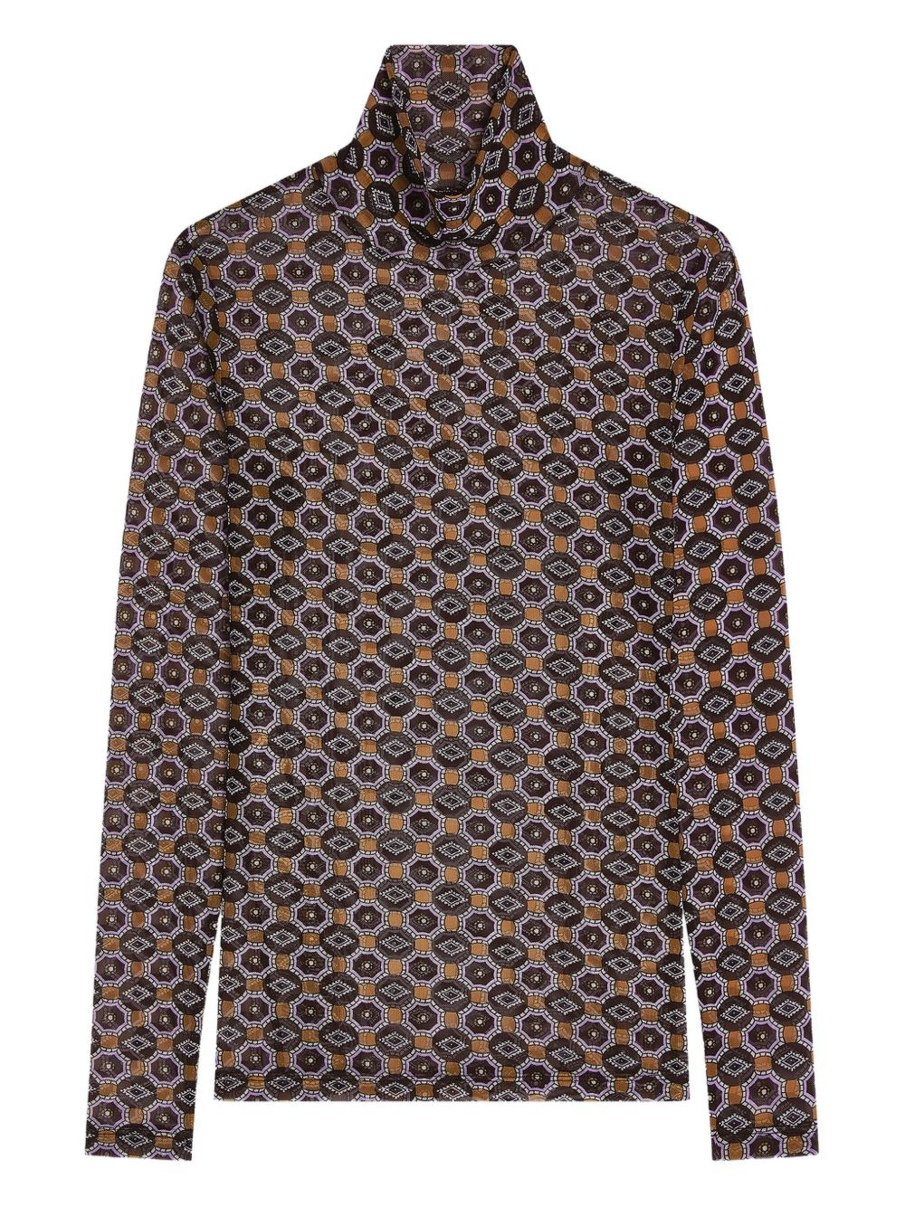 printed turtleneck top Highlights - Brown - Geometric pattern - Turtleneck - Long sleeves Imported Composition Nylon 94%, Elastane 6%