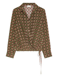 printed wrap shirt Highlights - Olive green - Geometric print - Wrap fastening - Long sleeves - Drawstring hem Imported Composition Silk 100% Washing instructions Read Manufacturer Guidelines