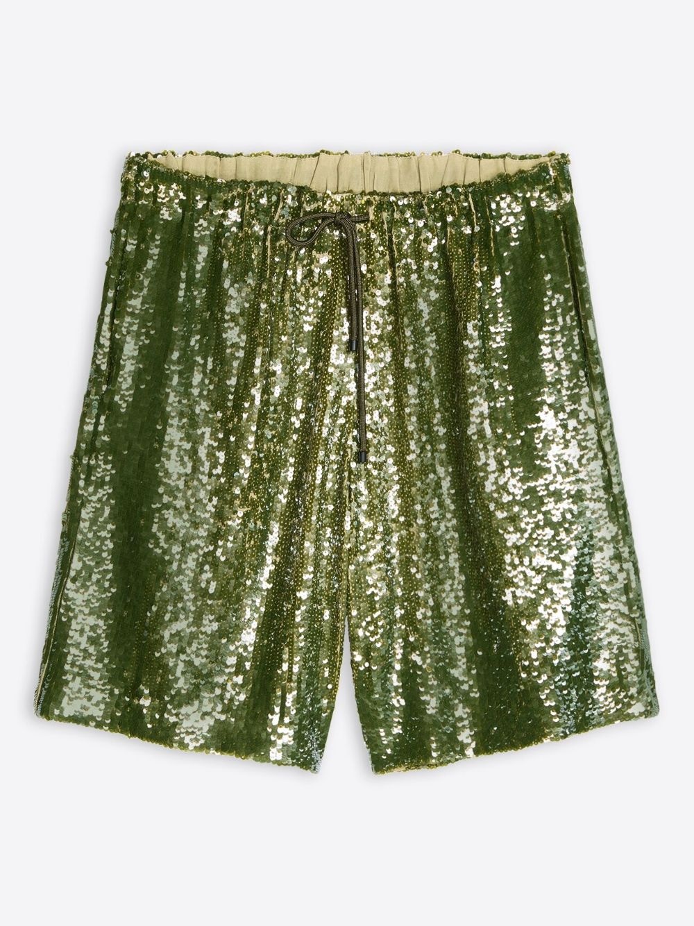 sequin-embellished shorts Highlights - Emerald green - Elasticated waistband - Front pockets - All-over sequin detail - Relaxed fit Imported Composition Viscose 100%