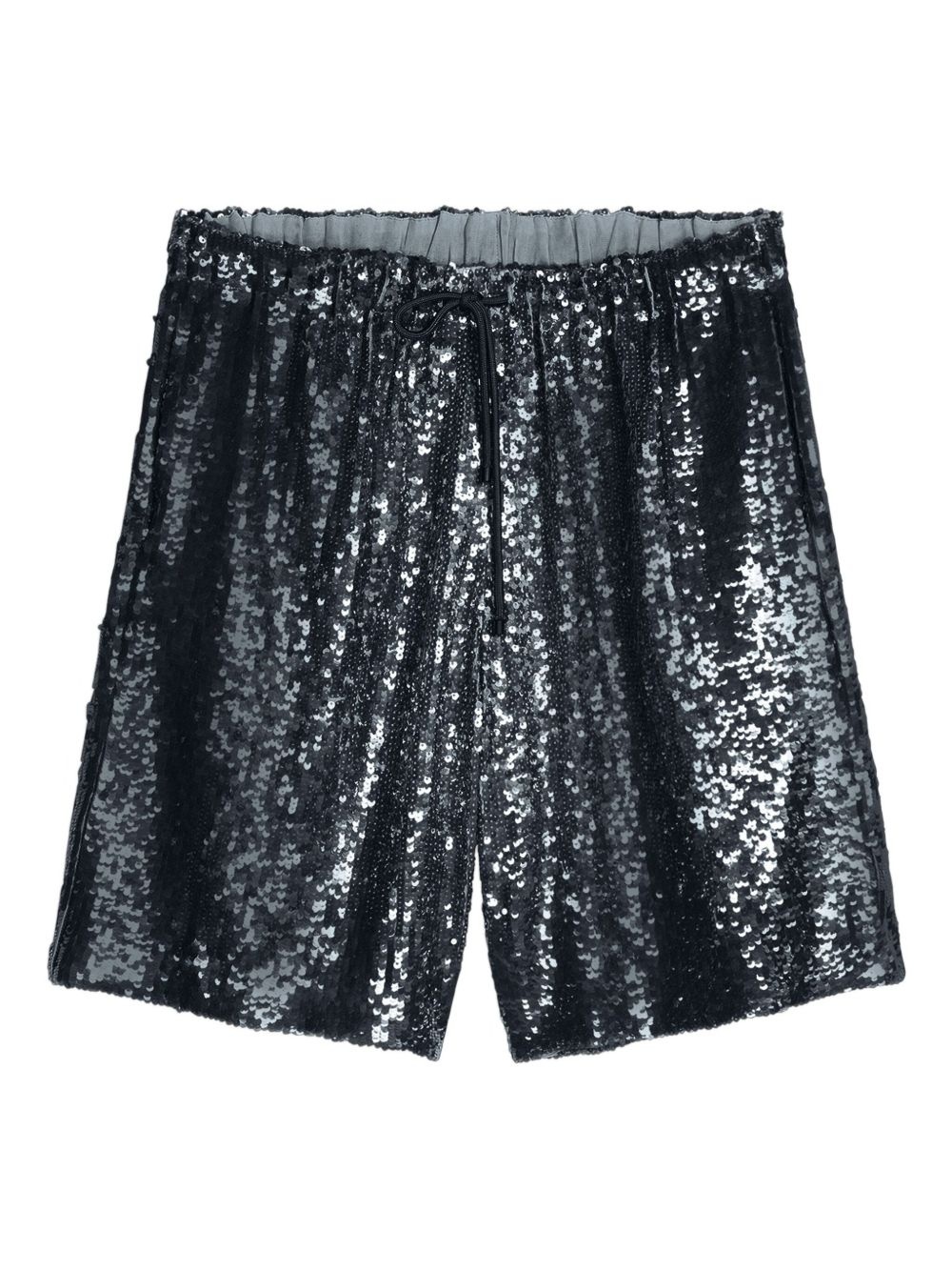sequin-embellished shorts Highlights - Navy blue - Elasticated waistband - Shimmering sequin design - Side pockets - Lightweight fabric Imported Composition Viscose 100% Washing instructions Read Manufacturer Guidelines