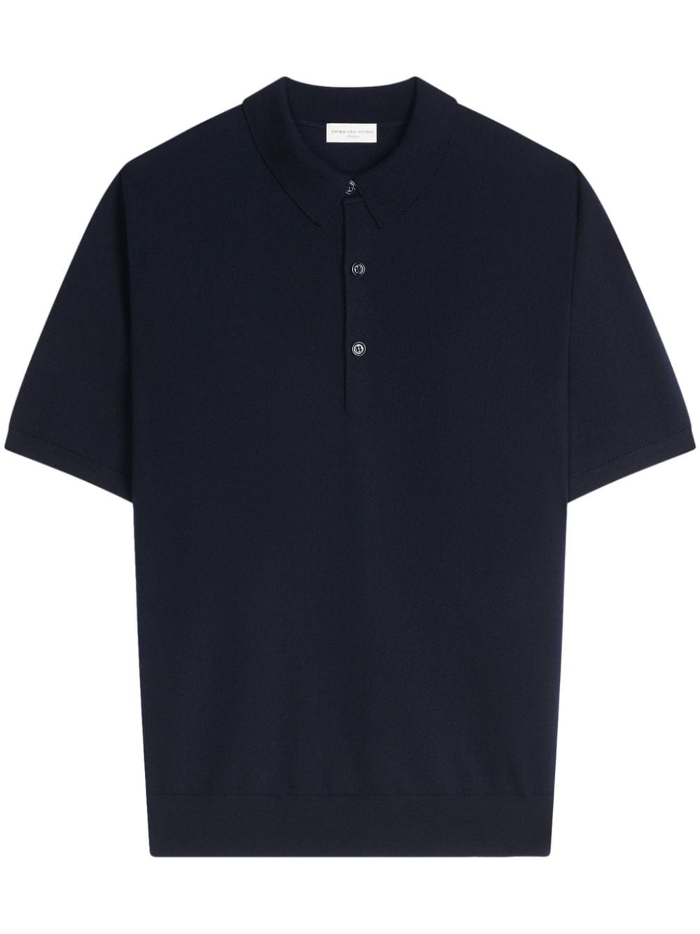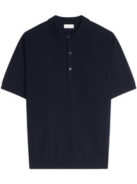 short-sleeve merino-wool polo shirt Highlights - Navy blue - Merino wool - Knitted construction - Polo collar - Front button placket - Short sleeves - Ribbed cuffs and hem - Straight hem Imported Composition Merino 100% SIZE & FIT Measurement CHEST 38.97 in(99 cm) SLEEVE LENGTH 17.91 in(45.5 cm) LENGTH 24.21 in(61.5 cm) Shoulder Width 16.53 in(42 cm)