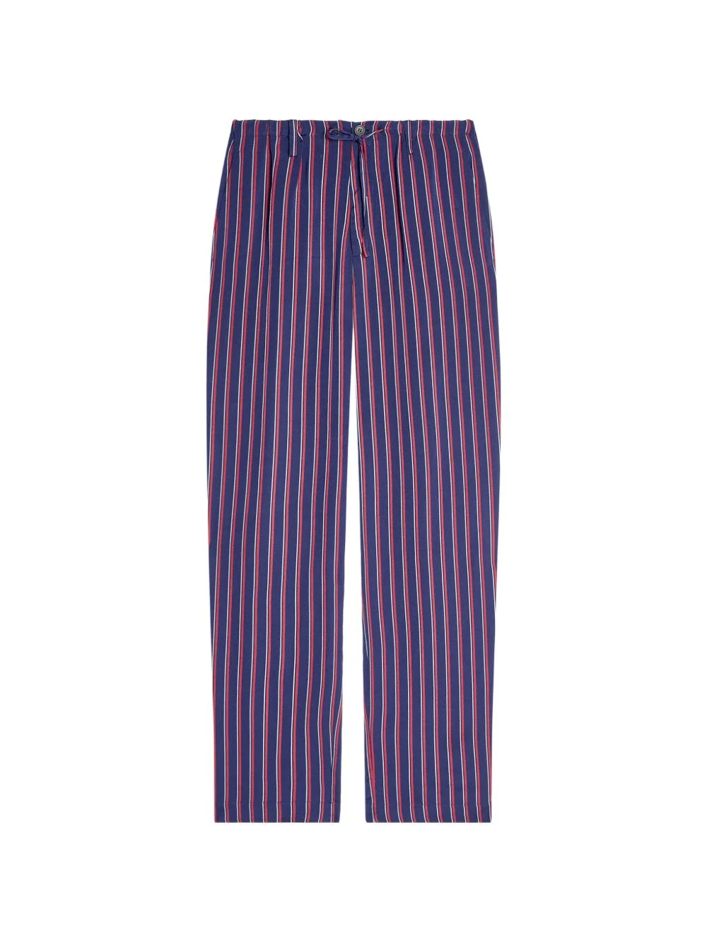 striped straight-leg trousers Highlights - Dark blue/pink - Striped pattern - Straight leg - Drawstring waistband Imported Composition Viscose 88%, Silk 12% Washing instructions Read Manufacturer Guidelines