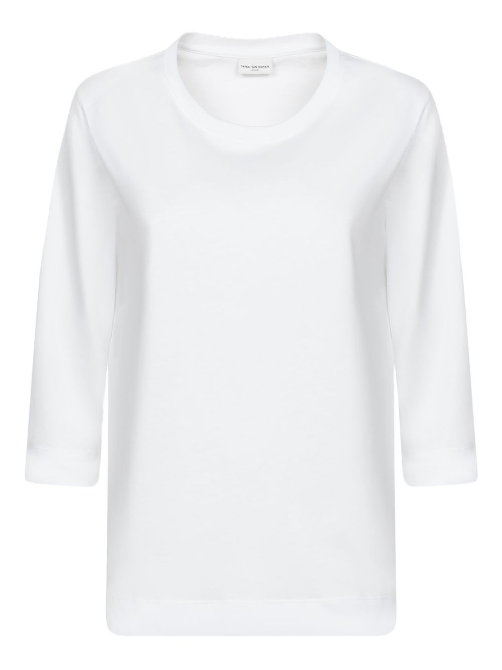 three-quarter sleeve cotton T-shirt Highlights - White - Cotton material - Three-quarter sleeves - Round neck - Plain design Imported Composition Cotton 100% Washing instructions Read Manufacturer Guidelines