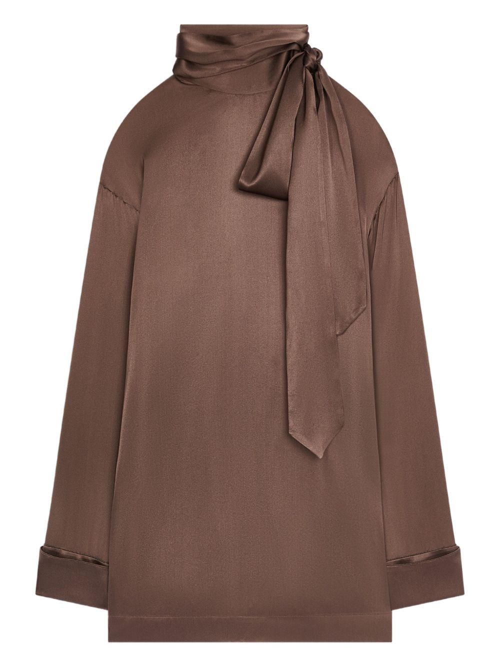 tie-neck blouse Highlights - Brown - Tie neck - Long sleeves - High neck Imported Composition Silk 94%, Elastane 6% Washing instructions Read Manufacturer Guidelines