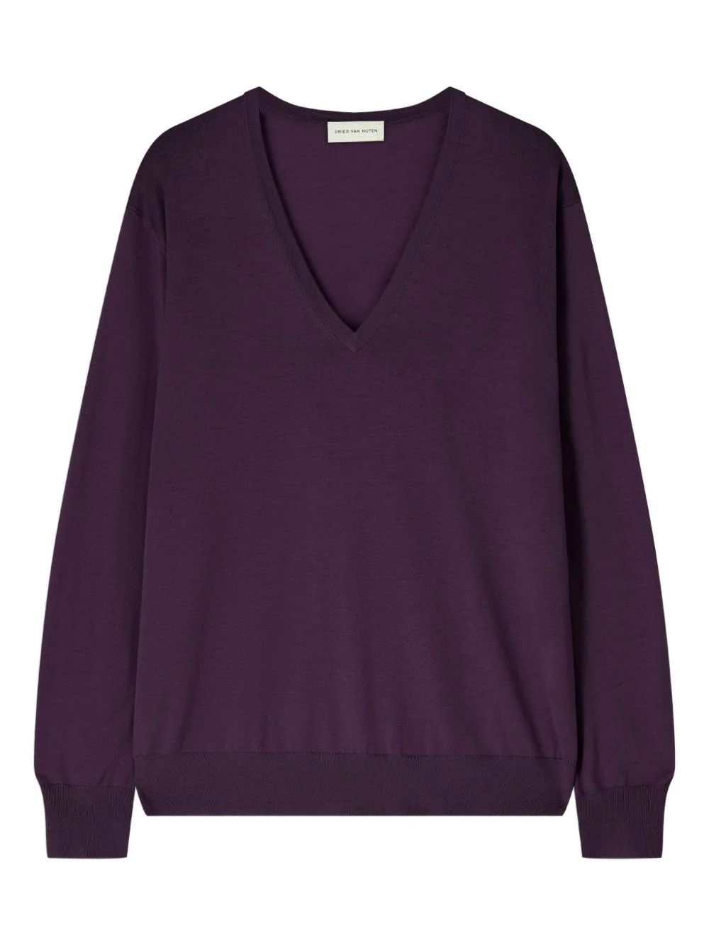 V-neck merino-wool sweater Highlights - Dark purple - V-neck - Long sleeves - Ribbed hem and cuffs Imported Composition Merino 100% Washing instructions Read Manufacturer Guidelines
