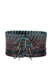 whipstitch-embellished corset belt Highlights - Brown - Lace-up front - Gold-tone metal eyelets - Leather trim Made in Italy Composition Leather 98%, Cotton 2%