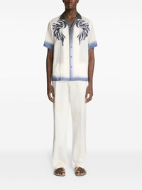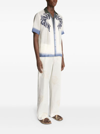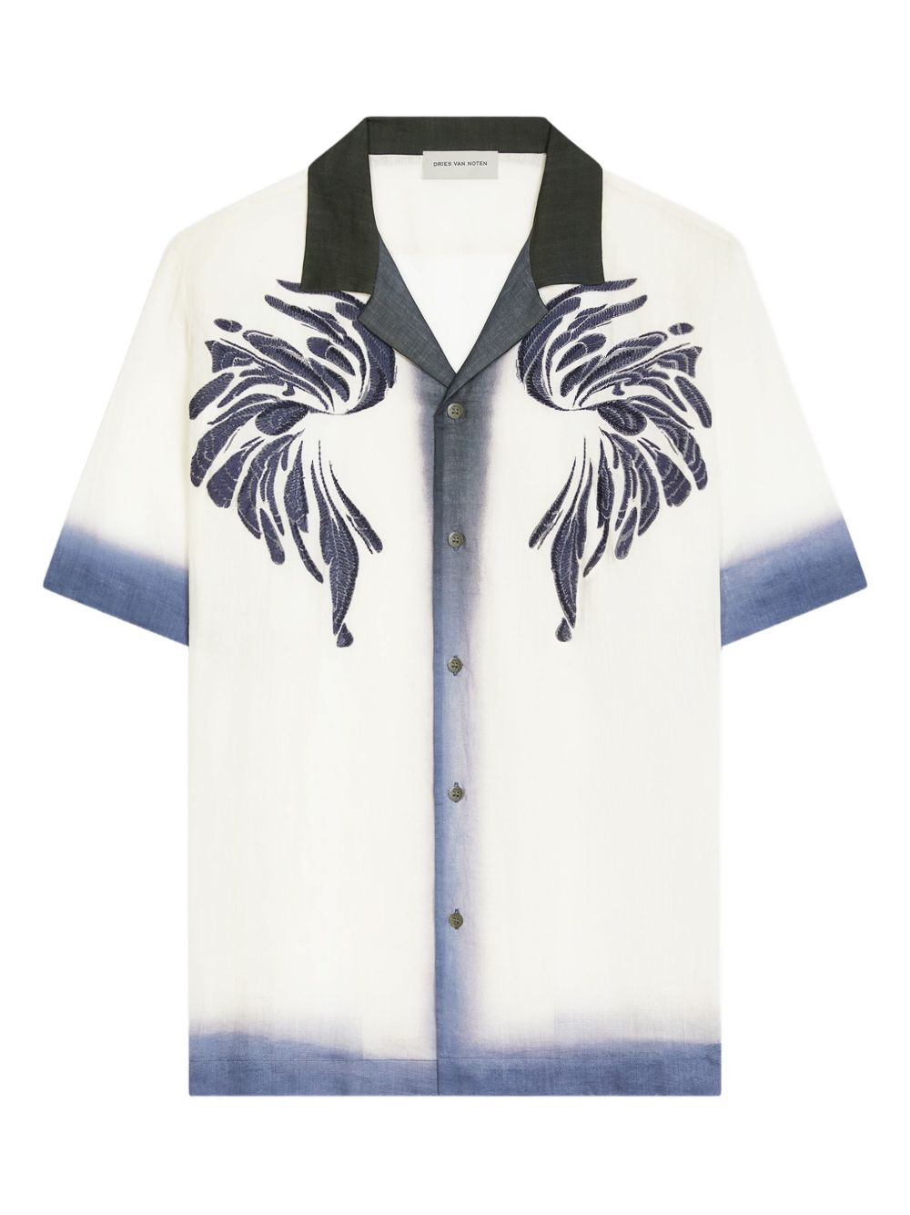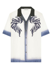wing-embroidery short-sleeve shirt Highlights - Ivory white - Embroidered wing design - Contrasting collar - Front button closure - Gradient hem - Short sleeves Imported Composition Viscose 100% Washing instructions Read Manufacturer Guidelines