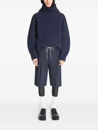 wool bermuda shorts Highlights - Navy blue - Adjustable and detachable waist strap - Belt loops - Side slit pockets Imported Composition Wool 100% Washing instructions Hand Wash