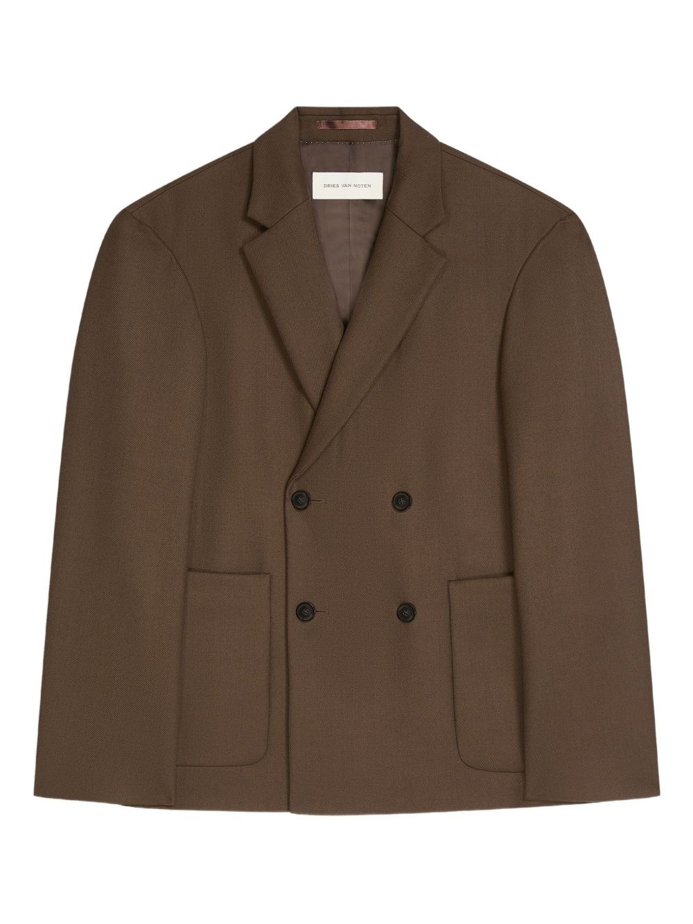 wool double-breasted blazer Highlights - Brown - Front button fastening - Long sleeves - Side patch pockets - Peak lapels Imported Composition Wool 100% Washing instructions Dry Clean Only