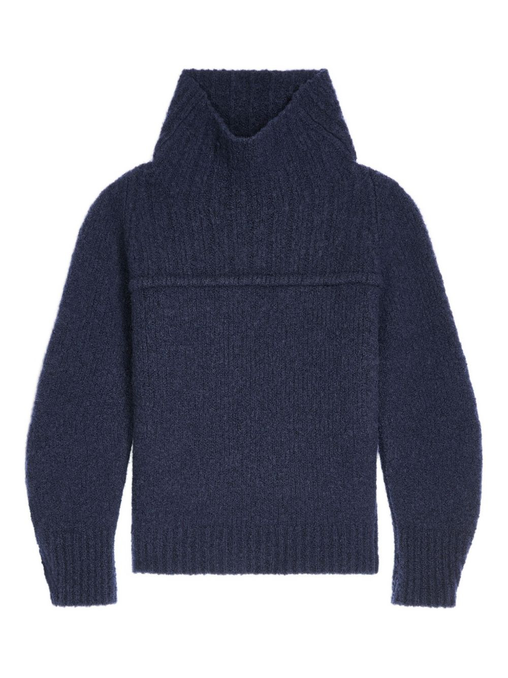 wool high-neck sweater Highlights - Navy blue - High neck - Long sleeves - Ribbed cuffs and hem Imported Composition Wool 100% Washing instructions Read Manufacturer Guidelines