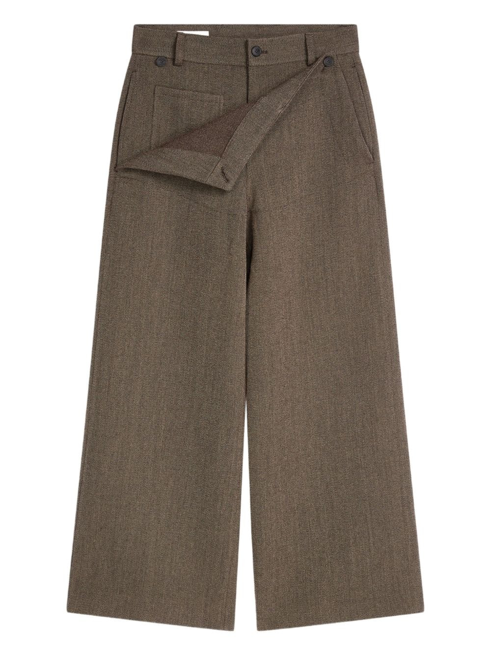 wrap-effect wool trousers Highlights - Brown - Wool - Wrap-effect design - Button fastening - Side pockets - Drawstring detail Imported Composition Wool 100% Washing instructions Read Manufacturer Guidelines
