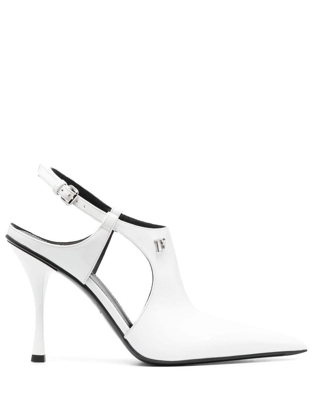 115mm slingback leather pumps Highlights - Optical white - Calf leather - Logo pendant - Pointed toe - Buckle-fastening slingback strap - Branded insole - 115mm stiletto heel - Leather outsole Made in Italy Composition Outer: Calf Leather 100% Sole: Rubber 100%, Calf Leather 100% Lining: Calf Leather 100% SIZE & FIT Measurement HEEL 4.33 in(11 cm)
