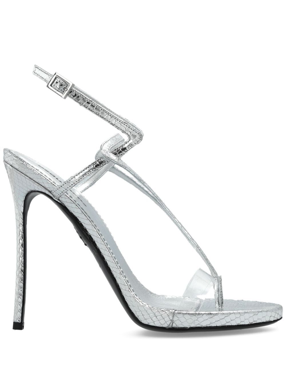 140mm leather heeled sandals Highlights - Silver-tone - Snakeskin effect - High stiletto heel - Ankle strap - Buckle fastening Made in Italy Composition Outer: Calf Leather 100% Lining: Calf Leather 100% Sole: Calf Leather 100% SIZE & FIT Measurement HEEL 5.51 in(14 cm)