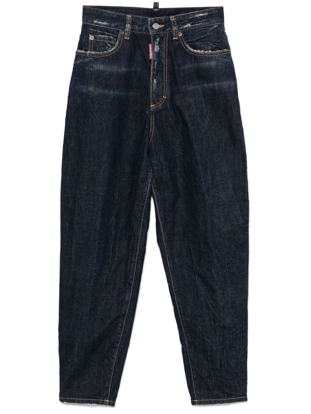80's jeans Highlights - Indigo blue - Cotton - Denim - Front button and zip fastening - Distressed effect - Belt loops - Classic five pockets - Whiskering effect - Logo patch to the rear - Tapered leg Made in Italy Composition Lining: Polyester 65%, Cotton 35% Outer: Cotton 100%