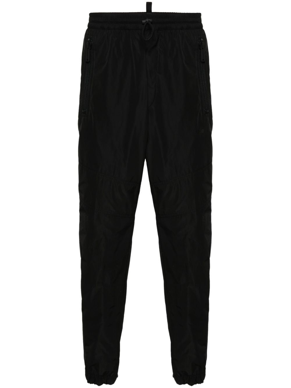 90's Urban track pants An ode to ‘90s casualwear, Dsquared2’s track pants are cut from taffeta to a tapered silhouette. The black palette references the brand’s minimalist side. Highlights - Black - Taffeta - Elasticated drawstring waistband - Two zip-fastening pockets - Branded zip puller - Decorative stitching - Elasticated ankles Made in Italy Composition Lining: Cotton 100% Outer: Polyester 100% SIZE & FIT Model measurements Height 6 ft 2 in(1.87 m) Bust/Chest 37 in(94 cm) Hips 33.85 in(86 cm) Waist 27.95 in(71 cm) FittingInformation Designed for a slim fit, offering a comfortable fit that sits just away from the leg The elasticated waist allows for a comfortable fit Made from a lightweight non-stretch fabric This piece fits true to size – take your usual size Washing instructions Machine Wash