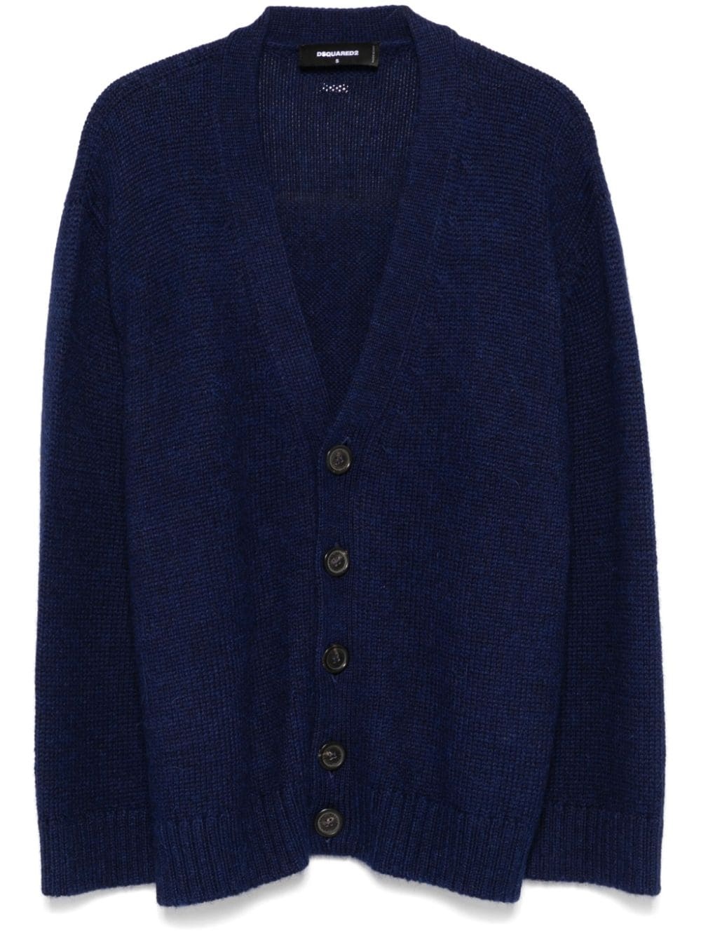 alpaca wool cardigan Highlights - Ocean blue - Alpaca wool - Ribbed knit - Brushed finish - Front button fastening - V-neck - Long sleeves - Silver-tone logo plaque - Straight hem Imported Composition Alpaca 100% SIZE & FIT FittingInformation Designed to be unstructured, offering a loose fit throughout Made with a midweight knit, this piece offers some stretch