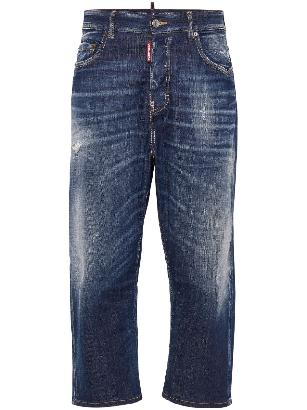 bleached-wash cropped jeans Highlights - Navy blue - Stretch-cotton - Bleach wash - Ripped detailing - Mini logo tag - Logo patch to the rear - Belt loops - Front button and zip fastening - Classic five pockets - Cropped leg Imported Composition Calf Leather 100%, Cotton 98%, Elastane 2%