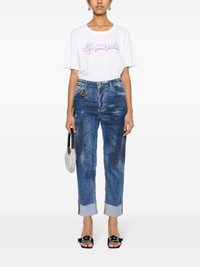 Boston straight-leg jeans Highlights - Blue - Denim - Bleached and distressed effect - Belt loops - Classic five pockets - Bronze-tone logo plaque - Embroidered logo - Logo patch to the rear - Turn-up hem - Front button fastening Made in Italy Composition Calf Leather 100%, Cotton 98%, Elastane 2% Lining: Polyester 65%, Cotton 35% SIZE & FIT Model measurements Height 5 ft 9 in(1.76 m) Bust/Chest 31.1 in(79 cm) Hips 36.61 in(93 cm) Waist 24.8 in(63 cm) FittingInformation Designed for a straight-leg fit, these jeans allow for a close fit at the waist and an unrestricted and comfortable fit over the leg Constructed from stretch denim, this piece offers a stretch fit with durability This piece fits true to size – take your usual size Washing instructions Machine Wash