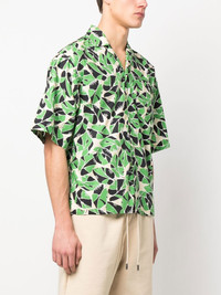 botanical-print short-sleeved shirt beige bright green cotton botanical print notched collar front button fastening short sleeves chest patch pocket straight hem Made in Italy Composition Cotton 100% SIZE & FIT Model measurements Height 6 ft 2 in(1.89 m) Bust/Chest 37.4 in(95 cm) Hips 35.03 in(89 cm) Waist 27.95 in(71 cm) FittingInformation Designed for a boxy fit, intended for a loose fit throughout Made from a lightweight non-stretch fabric This piece fits true to size – take your usual size Washing instructions Hand Wash