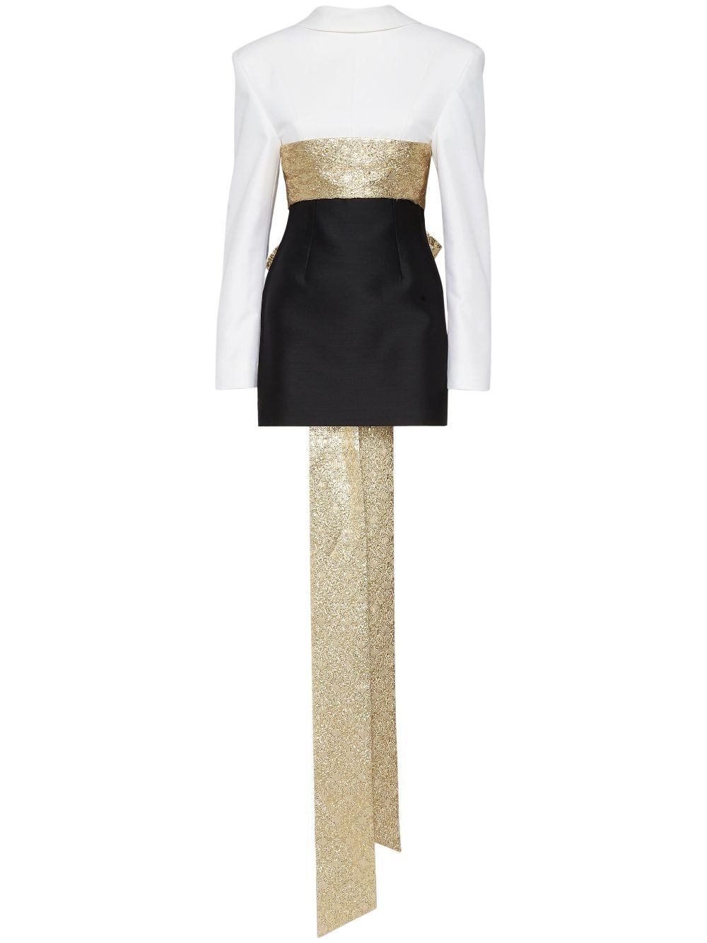 bow-detail mini dress Highlights - Black/white/gold-tone - Cotton-silk blend - Bow detailing - Concealed rear zip fastening - Round neck - Long sleeves - Buttoned cuffs - Fitted waistline - Straight hem - Thigh-length Made in Italy Composition Outer: Cotton 68%, Silk 32% Lining: Cotton 100%, Polyester 100%