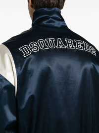 Bowling satin-finish jacket Highlights - Navy blue/red/white - Cotton blend - Stretch-design - Twill weave - Satin finish - Panelled design - Embroidered logo at the chest - Embroidered logo to the rear - Corduroy collar - Drop shoulder - Long sleeves - Ribbed cuffs and hem - Two front welt pockets - Front two-way zip fastening - Straight hem - Full lining Made in Italy Composition Outer: Cotton 52%, Viscose 43%, Elastane 5% Lining: Cotton 100%, Polyester 100% SIZE & FIT Model measurements Height 6 ft 2 in(1.89 m) Bust/Chest 37.4 in(95 cm) Hips 35.03 in(89 cm) Waist 27.95 in(71 cm) FittingInformation Designed for a regular fit, allowing for a comfortably loose fit throughout the body The ribbed hem offers a close, comfortable fit Made from a midweight non-stretch fabric This piece fits true to size – take your usual size Washing instructions Dry Clean Only