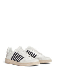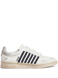 Boxer distressed low-top sneakers Highlights - White/black - Leather/suede - Multi-panel design - Side stripe detailing - Decorative stitching - Logo-print tongue - Branded insole - Contrasting heel counter - Padded ankle - Almond toe - Front lace-up fastening - Flat rubber sole - Logo at the sole Made in Italy Composition Lining: Fabric 100% Outer: Calf Leather 100% Sole: Rubber 100%