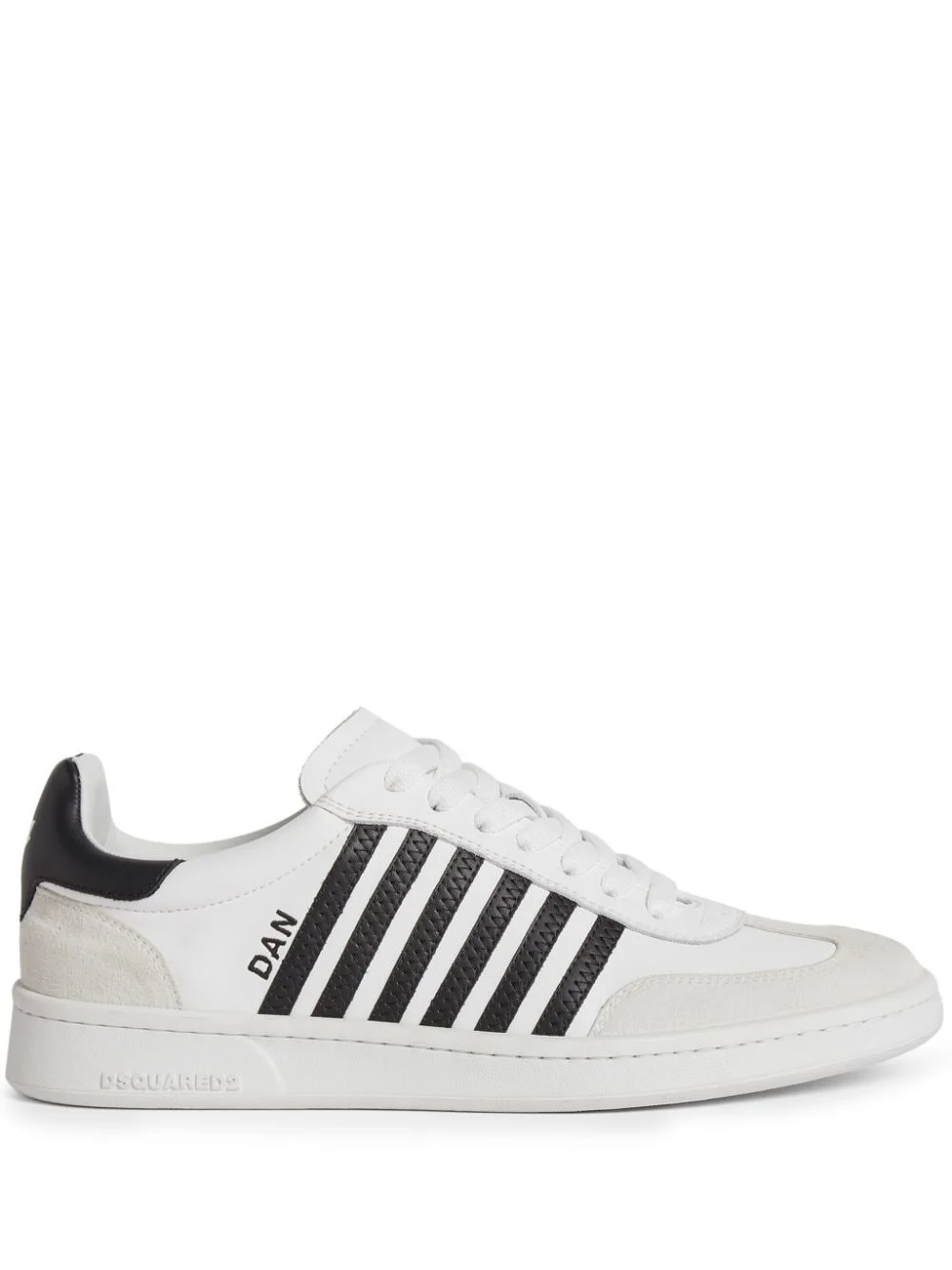 Boxer sneakers Highlights - White/black - Calf leather - Multi-panel design - Front lace-up fastening - Padded ankle - Branded heel counter - Logo-print tongue - Side stripe detailing - Decorative stitching - Almond toe - Branded insole - Flat rubber sole - Logo at the sole Made in Italy Composition Lining: Calf Leather 100% Outer: Calf Leather 100% Elastodiene 100%