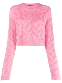 brushed mohair-blend jumper Highlights - Bubblegum pink - Mohair blend - Brushed effect - Silver-tone logo plaque - Cropped - Round neck - Long sleeves - Straight hem Made in Italy Composition Mohair 50%, Polyamide 32%, Wool 18% SIZE & FIT Model measurements Height 5 ft 10 in(1.78 m) Bust/Chest 33.46 in(85 cm) Hips 36.22 in(92 cm) Waist 23.22 in(59 cm) FittingInformation Designed for a slim fit that sits just away from the body offering a close yet comfortable fit Made with a lightweight knit, this piece offers some stretch This piece fits true to size – take your usual size Washing instructions Dry Clean Only