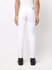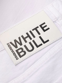 Bull slim-fit straight jeans The Bull jeans by DSquared2 appear here in a tonal white colourway, cut for a contemporary slim fit. The straight leg silhouette ensures the pair's versatility, while keeping it timeless. Made in Italy Composition Outer: Cotton 97%, Spandex/Elastane 3% Lining: Cotton 100% SIZE & FIT Model measurements Height 6 ft 2 in(1.87 m) Bust/Chest 38.18 in(97 cm) Hips 36.61 in(93 cm) Waist 29.13 in(74 cm) FittingInformation This piece fits true to size. We recommend you get your regular size Cut for a close fit Made with a mid-weight stretch fabric