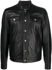 button-up leather shirt jet black cotton/leather classic collar front button fastening long sleeves two side flap pockets Imported Composition Outer: Ovine Leather (top grain) 100% Lining: Cotton 100% SIZE & FIT Model measurements Height 6 ft 2 in(1.87 m) Bust/Chest 38.18 in(97 cm) Hips 36.61 in(93 cm) Waist 29.13 in(74 cm) Washing instructions Specialist Cleaning