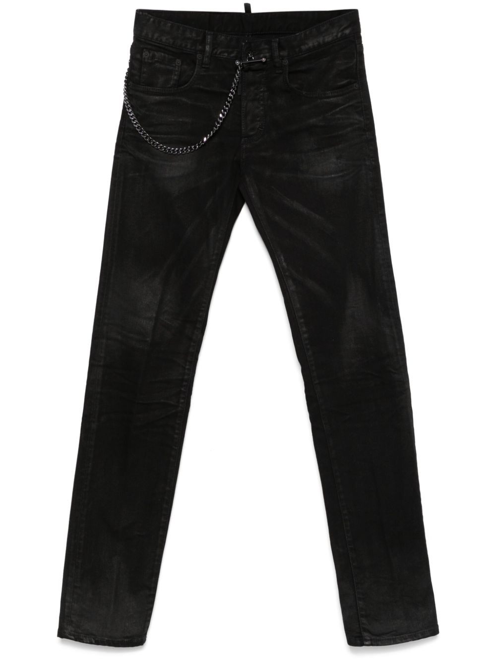 chain-detailed jeans Highlights - Black - Button fly fastening - Hook and eye fastening - Front press-stud fastening - Classic five pockets Made in Italy Composition Outer: Cotton 98%, Spandex/Elastane 2% Lining: Polyester 65%, Cotton 35% SIZE & FIT Model measurements Height 5 ft 11 in(1.8 m) Bust/Chest 32.67 in(83 cm) Hips 36.22 in(92 cm) Waist 24.4 in(62 cm) FittingInformation Designed for a slim fit, these jeans offer a close fit at the waist and sit just away from the leg Constructed from stretch denim, this piece offers a stretch fit with durability