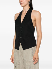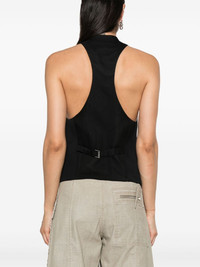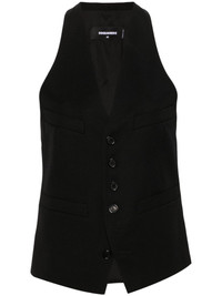 Classic Dean racerback waistcoat Highlights - Black - Virgin wool - Tailored design - V-neck - Front button fastening - Adjustable strap to the rear - Racerback - Sleeveless - Four front welt pockets - Silk lining Made in Italy Composition Outer: Silk 100%, Virgin Wool 100% Lining: Polyester 100% SIZE & FIT Model measurements Height 5 ft 11 in(1.8 m) Bust/Chest 33.07 in(84 cm) Hips 37.4 in(95 cm) Waist 25.19 in(64 cm) FittingInformation Designed for a slim fit that sits just away from the body offering a close yet comfortable fit The adjustable tabs allow for fitted preferences Made from a midweight non-stretch fabric This piece fits true to size – take your usual size