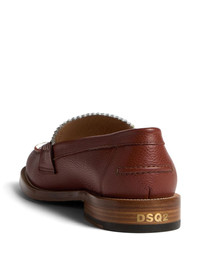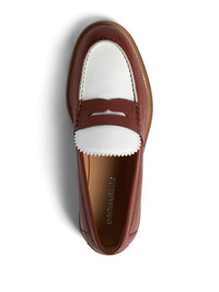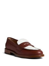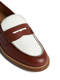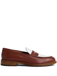 colour-block leather loafers Highlights - Cognac brown/white - Calf leather/leather - Pebbled texture - Colour-block panelled design - Logo stamp to the rear - Zigzag edge - Penny slot - Almond toe - Slip-on style - Branded leather insole - Low stacked heel - Leather sole Made in Italy Composition Sole: Leather 100% Lining: Calf Leather 100% Outer: Calf Leather 100%