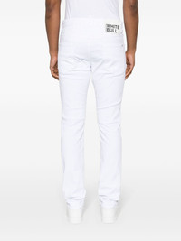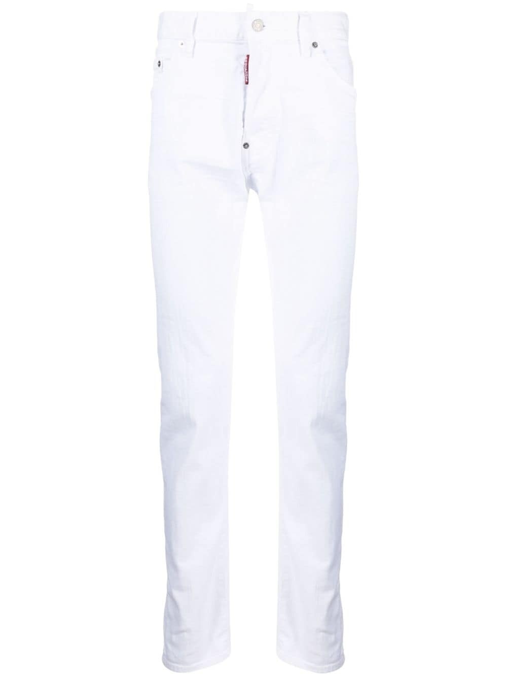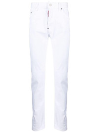 Cool Guy skinny jeans As declared by the logo patch at the back, these white Dsquared2 skinny jeans are cut from bull denim chosen for its durable and prominent twill weave. Highlights - Optical white - Stretch-cotton - Bull denim - Logo patch to the rear - Mid-rise - Belt loops - Skinny cut - Concealed fly and button fastening - Classic five pockets Imported Composition Outer: Calf Leather 100%, Cotton 98%, Spandex/Elastane 2% Lining: Cotton 100% SIZE & FIT Model measurements Height 6 ft 1 in(1.85 m) Bust/Chest 38.58 in(98 cm) Hips 37 in(94 cm) Waist 30.31 in(77 cm) FittingInformation Designed for a skinny fit, these jeans offer a close fit throughout Constructed from stretch denim, this piece offers a stretch fit with durability This piece fits true to size – take your usual size Washing instructions Machine Wash