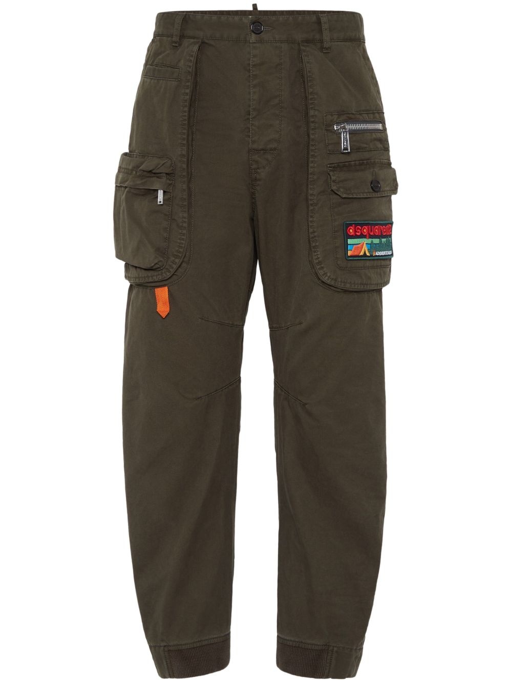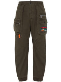 cotton cargo trousers Highlights - Green - Cotton - Front button and zip fastening - Logo patch to the side - Two side cargo pockets - Two rear welt pockets Imported Composition Outer: Cotton 100% Lining: Cotton 100%