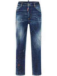 cotton denim jeans Highlights - Navy blue - Cotton - Washed denim - Front button and zip fastening - Belt loops - Classic five pockets - Mini logo tag - Whiskering effect - Ripped detailing - Paint splatter detail - Logo patch to the rear Made in Italy Composition Outer: Cotton 99%, Elastane 1% Lining: Polyester 65%, Cotton 35%