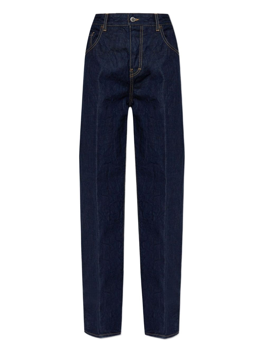 cotton jeans Highlights - Navy blue - Front button fastening - Classic five pockets - Embroidered logo - Straight leg Made in Italy Composition Cotton 100%