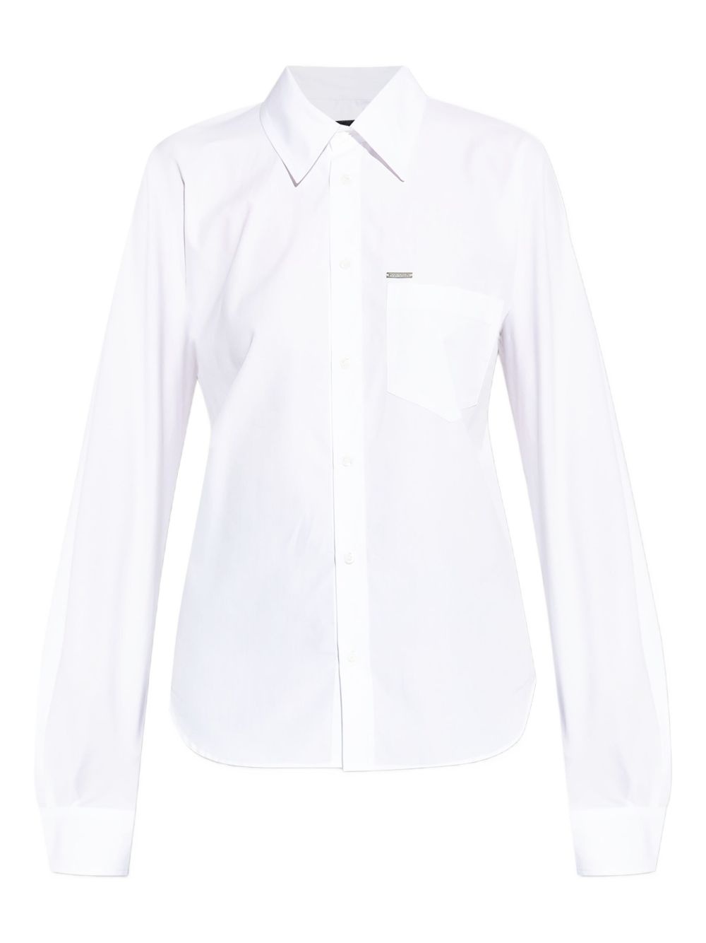 cotton shirt Highlights - White - Front button fastening - Chest patch pocket - Straight-point collar - Long sleeves Made in Italy Composition Cotton 100%