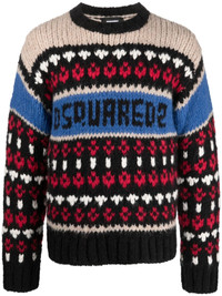 crochet-panelling jumper black/multicolour alpaca wool-blend intarsia-knit logo crochet panelling contrasting border long sleeves Imported Composition Alpaca Wool 87%, Polyamide 13% SIZE & FIT Model measurements Height 6 ft 2 in(1.87 m) Bust/Chest 36.41 in(92.5 cm) Hips 37 in(94 cm) Waist 29.52 in(75 cm) FittingInformation Designed for a relaxed fit, this piece allows for comfort and movement when worn Made with a midweight knit, this piece offers some stretch This piece fits true to size – take your usual size Washing instructions Dry Clean Only