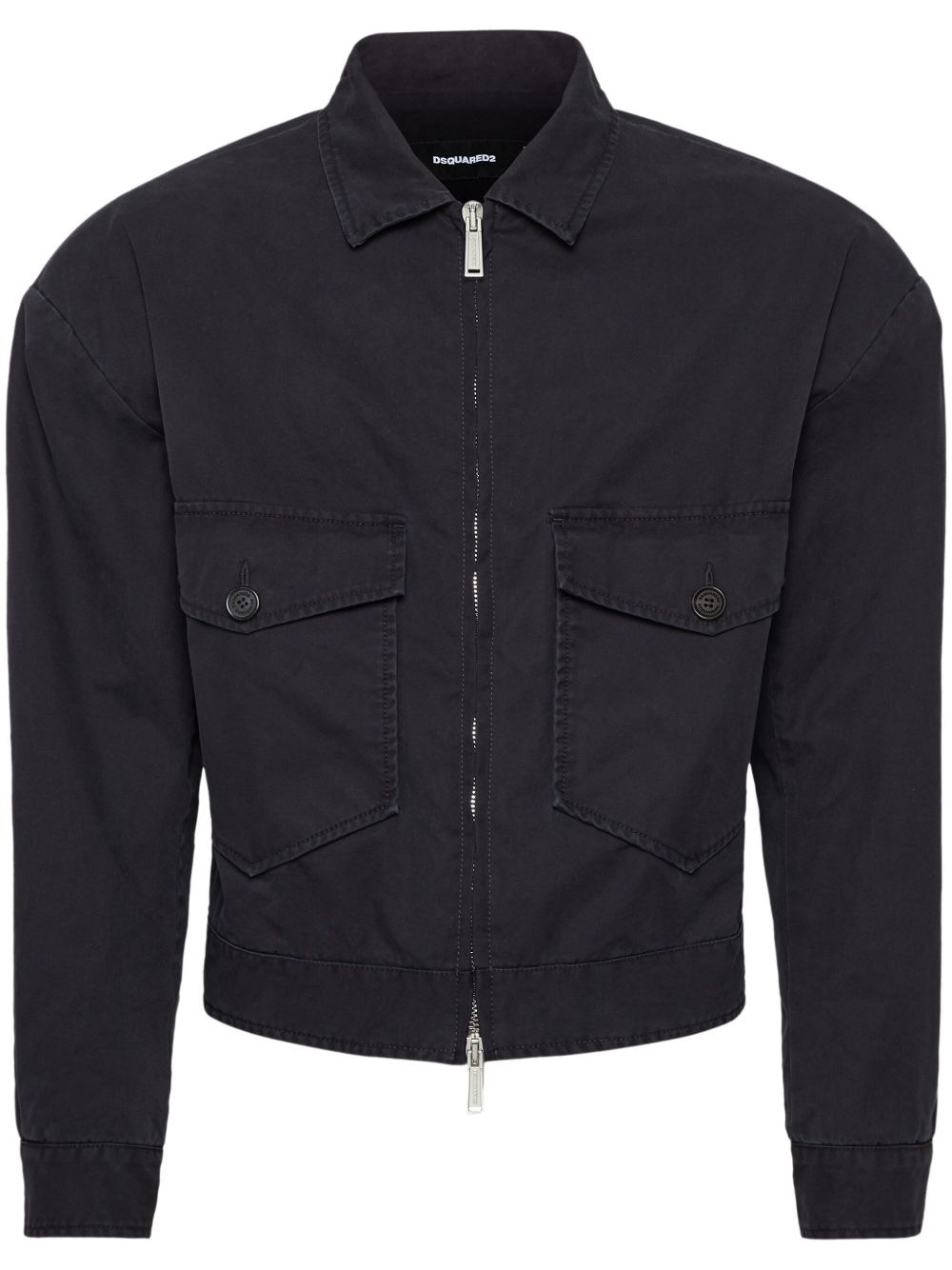 cropped cotton jacket Highlights - Black - Cotton - Cropped - Classic collar - Front two-way zip fastening - Drop shoulder - Two chest flap pockets - Long sleeves - Buttoned cuffs Made in Italy Composition Cotton 100%