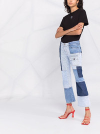 cropped patchwork pocket-detail jeans