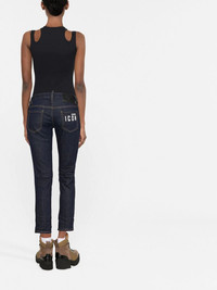 cropped slim-fit jeans Dsquared2 brings together Canadian iconography and refined Italian expertise. Featuring a logo patch at the front and a cropped leg, these details add a streetwear-inspired edge to their intricate craftsmanship. Made in Italy Composition Outer: Cotton 98%, Spandex/Elastane 2% Lining: Polyester 65%, Cotton 35% SIZE & FIT Model measurements Height 5 ft 10 in(1.77 m) Bust/Chest 31.49 in(80 cm) Hips 33.85 in(86 cm) Waist 22.44 in(57 cm) Washing instructions Machine Wash