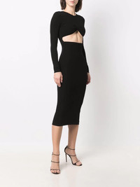cut-out detail dress black cut-out detailing stretch-design round neck long sleeves mid-length Made in Italy Composition Viscose 100% SIZE & FIT Model measurements Height 5 ft 10 in(1.77 m) Bust/Chest 35.03 in(89 cm) Hips 35.03 in(89 cm) Waist 23.62 in(60 cm) FittingInformation This piece fits true to size. We recommend you get your regular size Cut for a close fit Made with a mid-weight non-stretch fabric Washing instructions Dry Clean Only