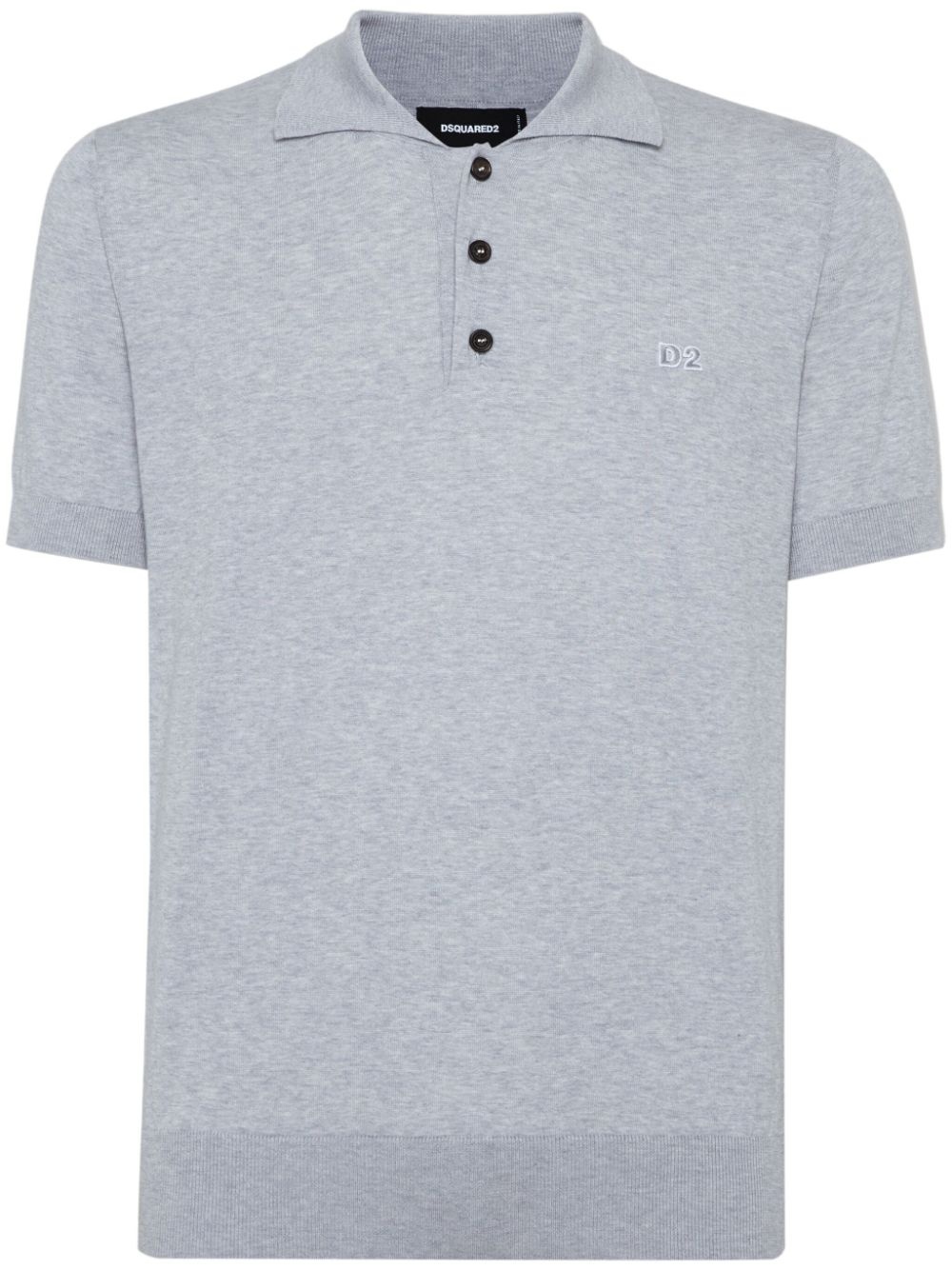 D2 polo shirt Highlights - Light grey - Cotton - Fine knit - Melange effect - Polo collar - Front button placket - Applique logo - Short sleeves - Ribbed cuffs and hem Imported Composition Cotton 100%