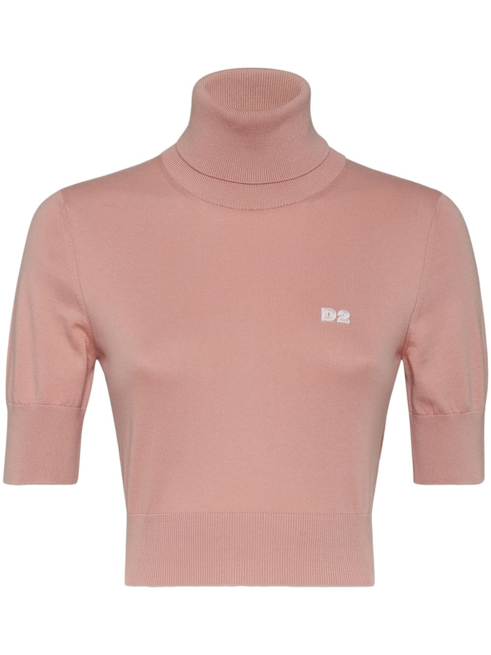 D2 roll-neck crop top Highlights - Rose pink - Virgin wool - Knitted construction - Roll neck - Applique logo - Short sleeves - Ribbed cuffs and hem - Cropped Made in Italy Composition Virgin Wool 100%