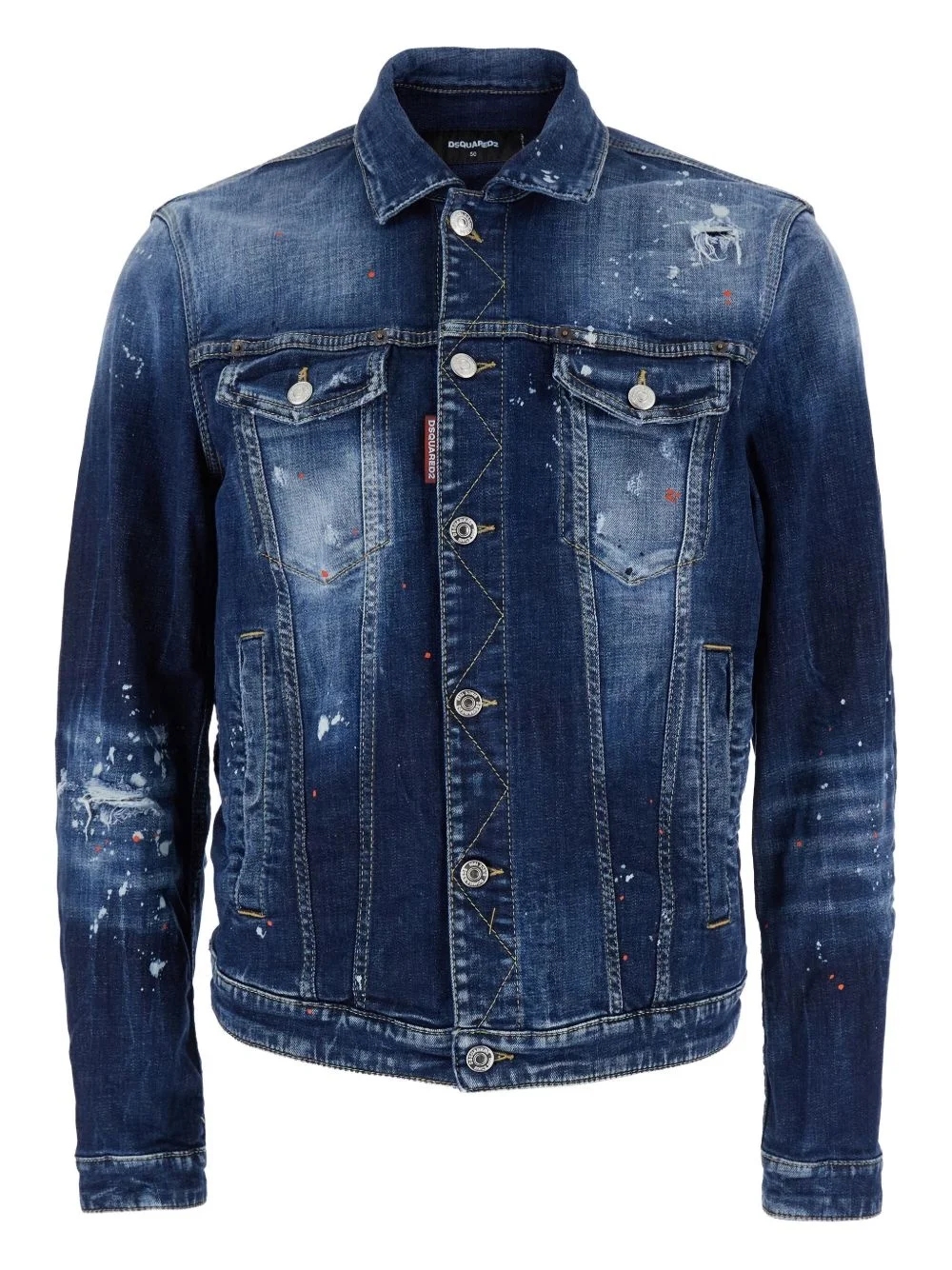 Dan painted classic-collar denim jacket Highlights - Blue - Classic collar - All-over painted details - Button fastening - Distressed - Long sleeves Made in Italy Composition Cotton 99%, Elastane 1% Washing instructions Read Manufacturer Guidelines