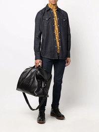 dark-wash denim shirt blue cotton blend contrast stitching two chest patch pockets front button fastening long sleeves classic collar Made in Italy Composition Cotton 87%, Spandex/Elastane 13% SIZE & FIT Model measurements Height 6 ft 2 in(1.87 m) Bust/Chest 38.18 in(97 cm) Hips 36.61 in(93 cm) Waist 29.13 in(74 cm) Washing instructions Dry Clean Only