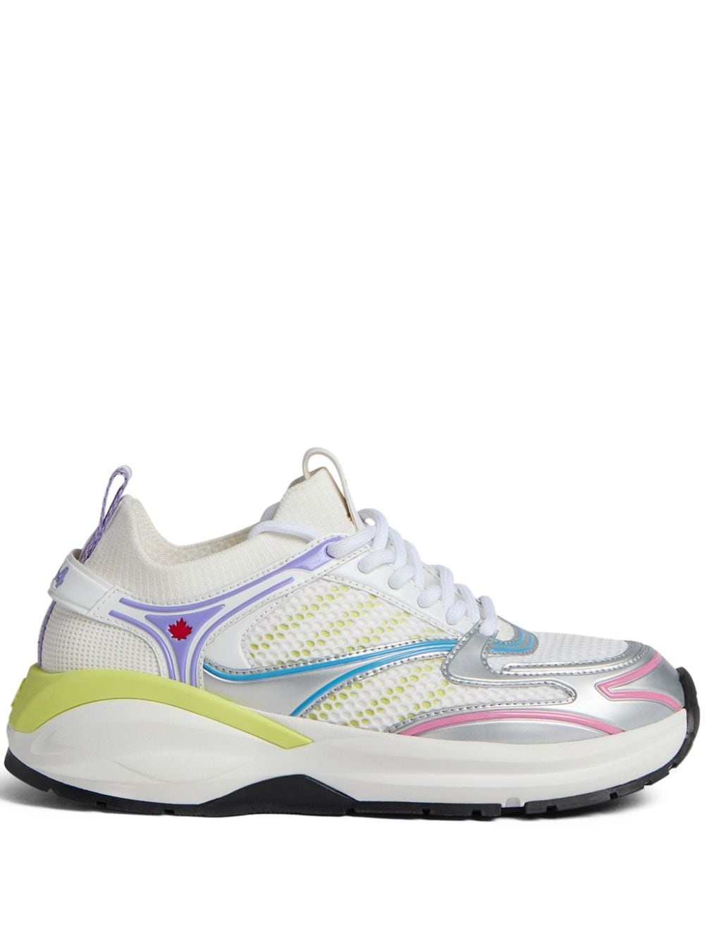 Dash panelled lace-up sneakers Highlights - White/multicolour - Panelled design - Mesh panelling - Logo pull-tab - Pull-tab at the heel - Round toe - Front lace-up fastening - Branded insole - Chunky rubber sole Imported Composition Outer: Polyester 48%, Polyurethane 46%, Spandex/Elastane 6% Lining: Polyester 90%, Polyurethane 10% Sole: Polyethylene vinyl acetate (PEVA) 65%, Elastodiene 25%, Polyurethane 10% SIZE & FIT Measurement HEEL 1.96 in(5 cm) Sole height 0.98 in(2.5 cm)