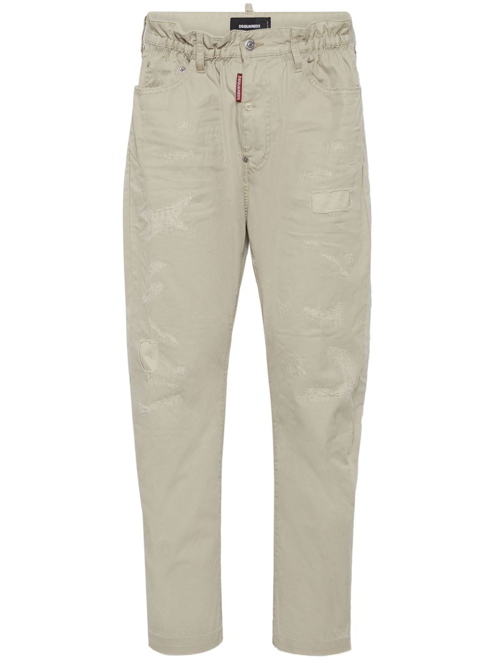distress-effect trousers Highlights - Sand beige - Cotton - Mini logo tag - Front button fastening - Elasticated waistband - Classic five pockets - Distressed effect Made in Italy Composition Outer: Cotton 100% Lining: Polyester 65%, Cotton 35%