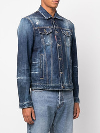 distressed denim jacket indigo blue cotton blend distressed effect glass crystal embellishment classic collar front button fastening two side flap pockets long sleeves Made in Italy Composition Lining: Polyester 65%, Cotton 35% Outer: glass 100%, Cotton 99%, Spandex/Elastane 1% SIZE & FIT Model measurements Height 6 ft 2 in(1.89 m) Bust/Chest 35.03 in(89 cm) Hips 38.18 in(97 cm) Waist 29.92 in(76 cm) FittingInformation This piece fits true to size. We recommend you get your regular size Cut for a slim fit Made with a mid-weight stretch fabric Washing instructions Dry Clean Only
